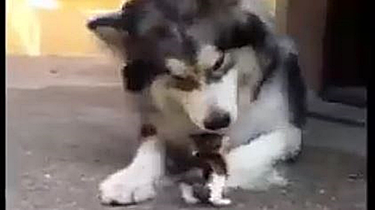 Kölyökcicától retten meg a termetes kutya – vicces videó
