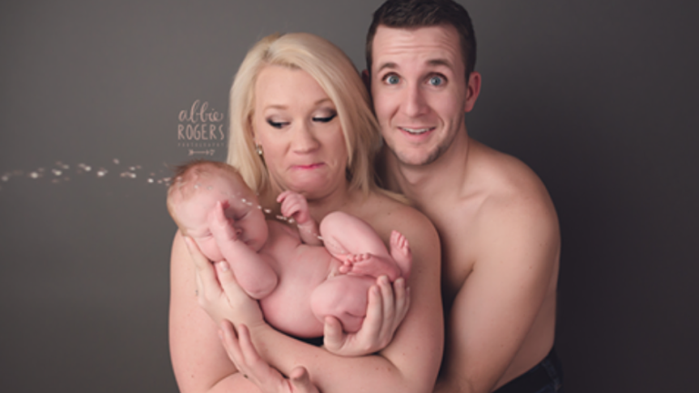 Az újszülött alaposan meglepte a szüleit a családi fotózáson