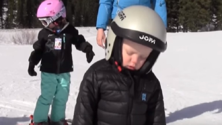 Vicces videó: snowboardján állva aludt el a kisgyerek