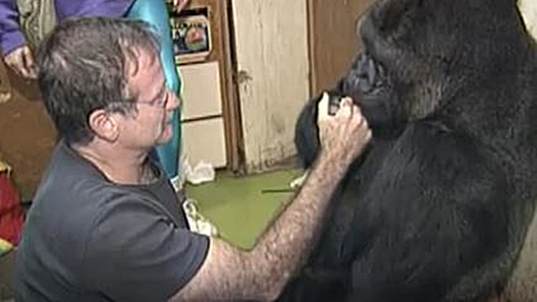 Ilyen volt Robin Williams és Koko, a gorilla első találkozása – gyönyörű videó