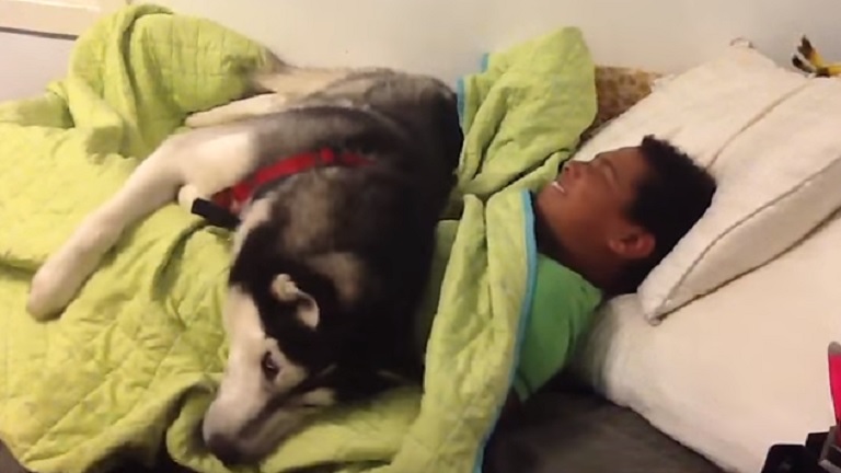 Ez a husky nagyon nem akarja, hogy gazdájával kikeljenek az ágyból – vicces videó