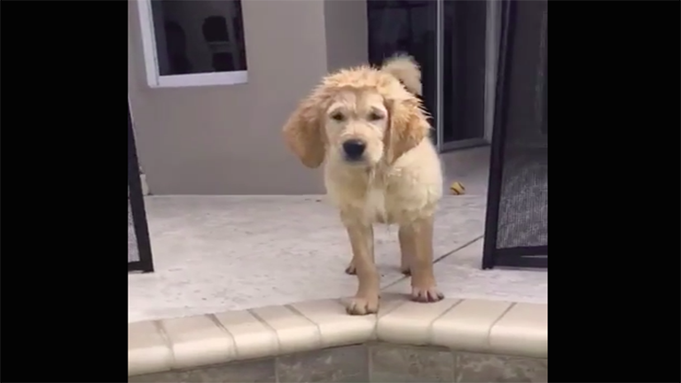 Ez a kutyus még nem érzi a medencés bulit – cuki videó