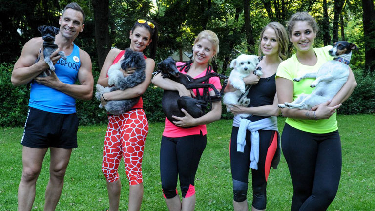 Nyári Dia, Sarka Kata és Szabó Zsófi cicanadrágban kutyázik