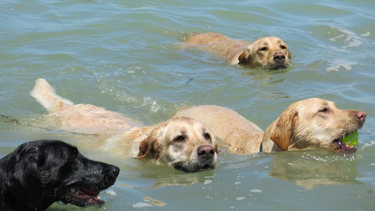 Boldogan pancsolnak a kutyák a fonyódi kutyastrandon – képek