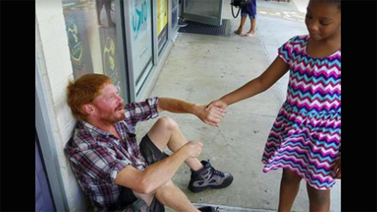 Megható: így vigasztalta a kislány a síró hajléktalant