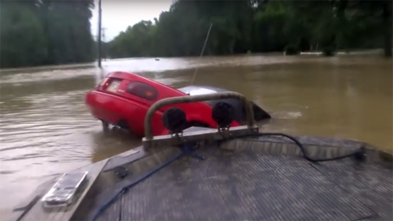 Drámai videó: süllyedő autóból mentik a nőt és a kutyáját