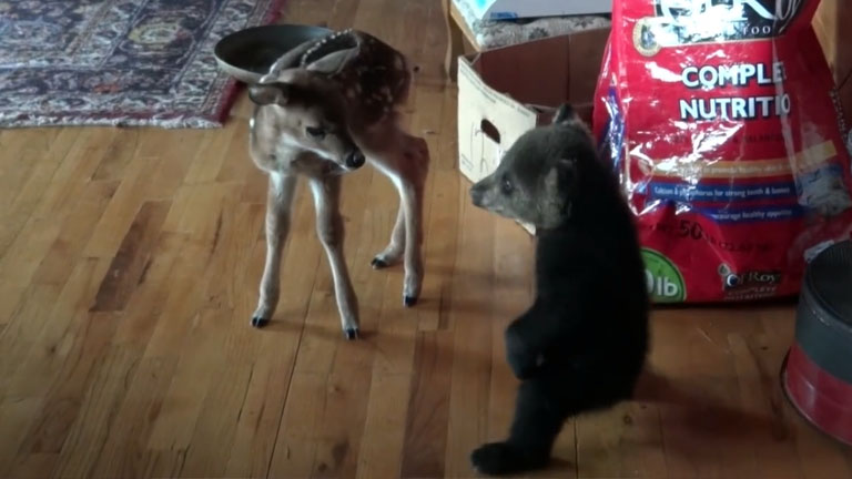 Cukiságcunami – Mackókölyök ismerkedik őzgidával