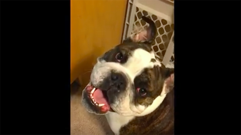 Kutyás bortartóval haverkodna a barátságos buldog – vicces videó
