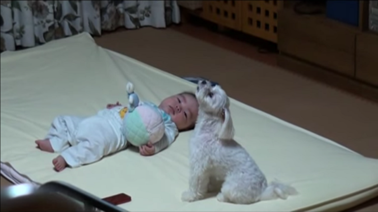 Ha a kisbaba sír, rázendít a kutya is – tüneményes videó