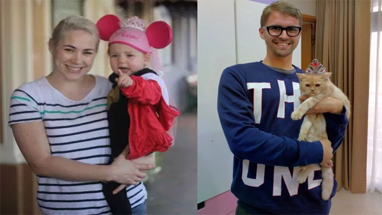 Macskával fotózta újra a testvére babafotóit ez a srác – képek