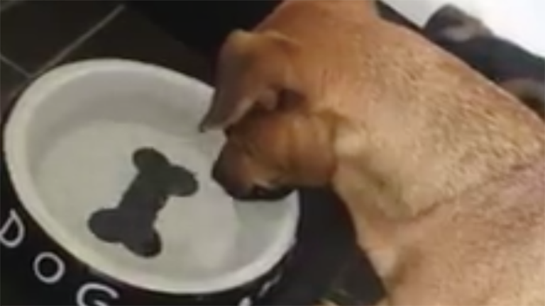 Vicces videó: ezt a kutyát megbabonázta saját tálja