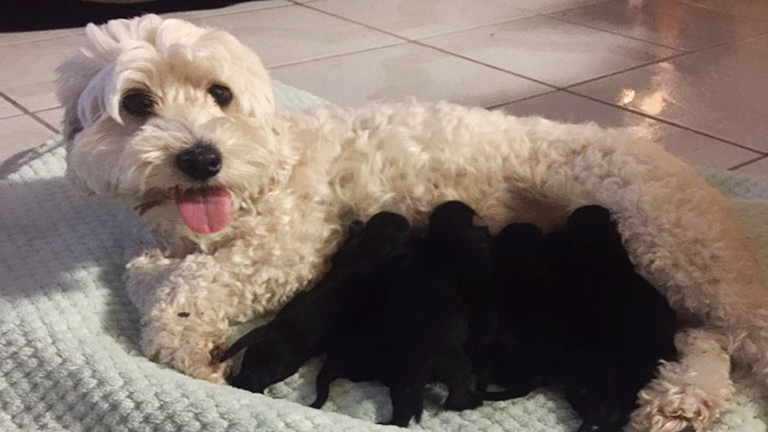 Fekete kölykei születtek a fehér kutyáknak – cuki fotók