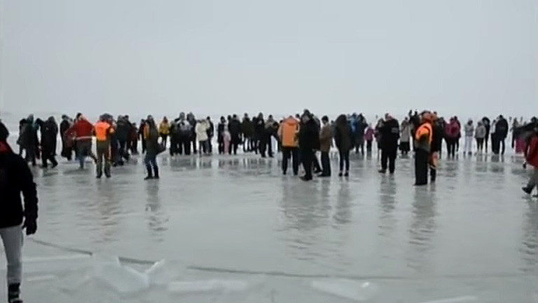Majdnem tragédia történt a Balaton jegén: süllyedni kezdett a jégkörhinta – videó