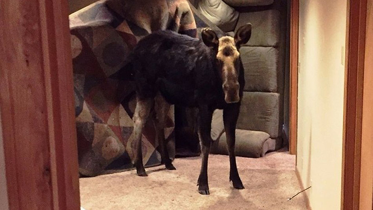 Betört a jávorszarvas a családhoz, hogy telekakálja az alagsort