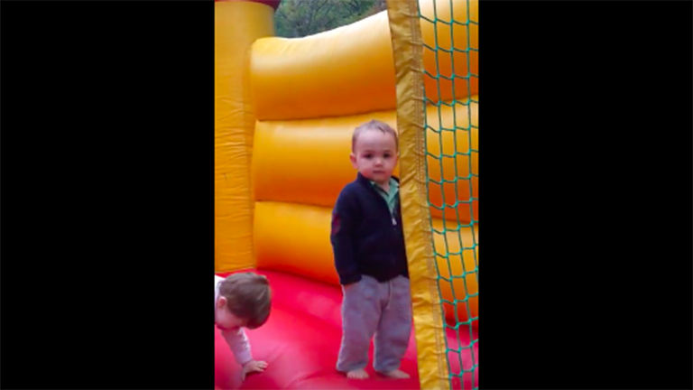 Nagyon közepesen élvezi a kisfiú az ugrálóvárat