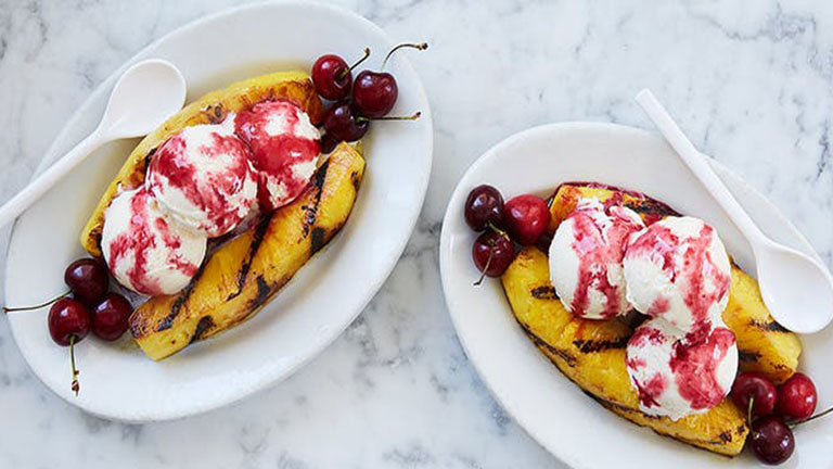 Grillezett ananászos fagyikehely cseresznyeszósszal