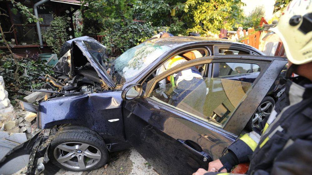 Beleszállt a BMW a kőbányai családi ház kertjébe – fotó