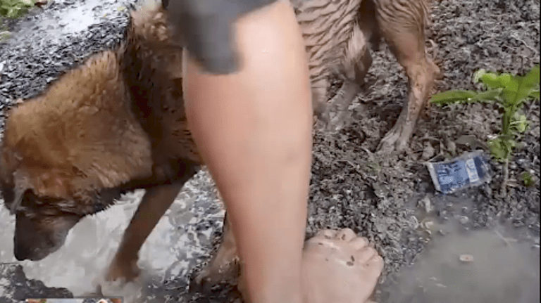 Vízzel teli üregből mentette ki kölykeit a kutyamama – videó