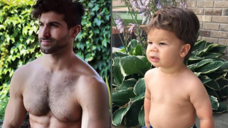 Modell nagybátyja képeit utánozza ez a 18 hónapos kisfiú – sírva nevetős képek
