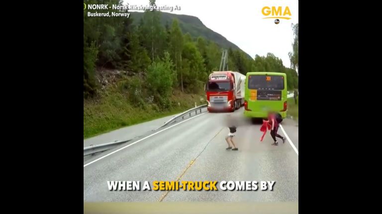 Egy hajszálon múlt, hogy nem csapta el a kamion az előtte átrohanó gyereket