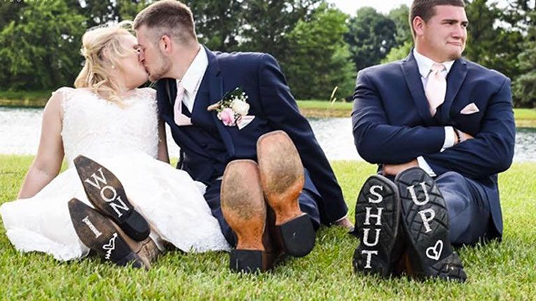 Vicces esküvői képek: a férj barátja is csatlakozott a fotózáshoz