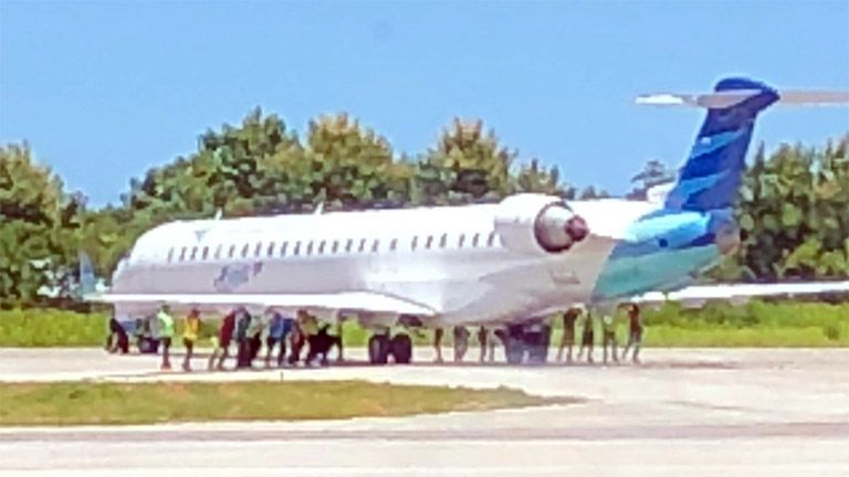 Kézzel toltak be egy repülőt Indonéziában – videó