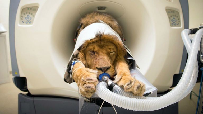 Alig fért be a CT-gépbe az oroszlán – fotók