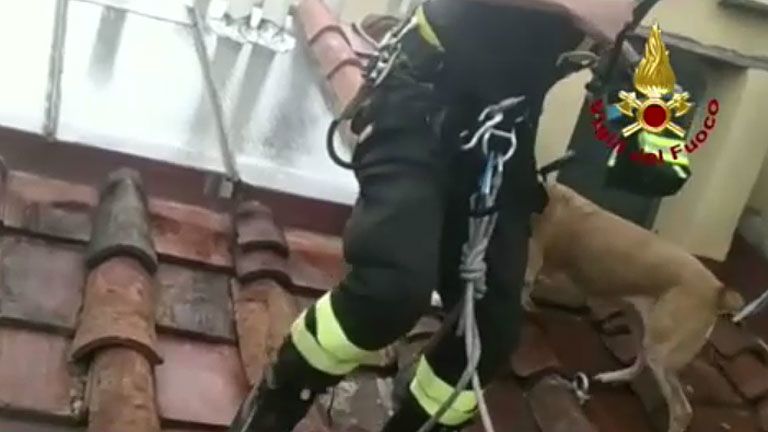 Háztetőről mentettek kutyát – videó