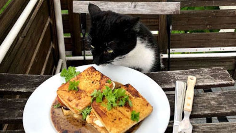 Ez a macska minden este a vacsoraasztalnál ül és élvezi