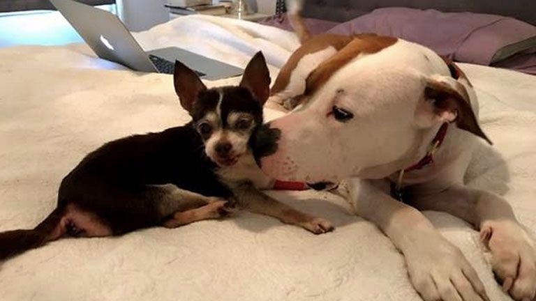 Oldaltáskában hurcolássza vak kutyabarátját ez a pitbull