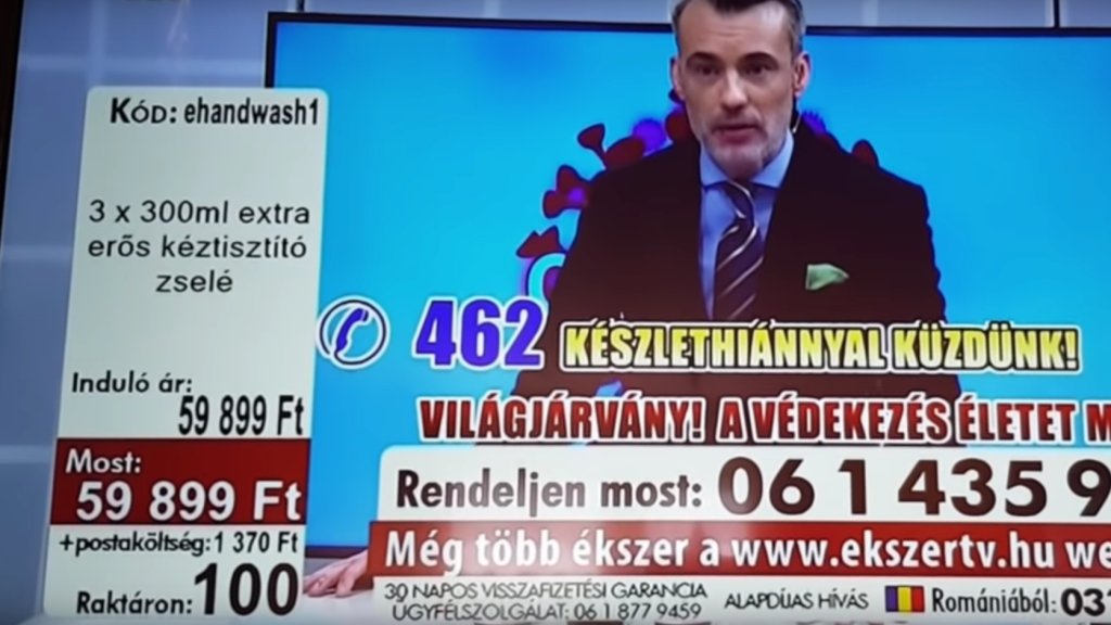 60 ezer forint volt az induló ára három kézfertőtlenítőnek a tévében