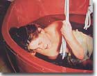 A kórházválasztásnál fontos szempont volt számukra a vajúdókád. Mariann szeretett volna vízben szülni, de végül éppen ő volt az, aki az első hét tolófájás után inkább kikívánkozott a vízből. Addig azonban nyolc nehéz órának kellett még eltelnie. Egy darabig segített a meleg víz. A kényelmes kádban könnyebb volt testhelyzetet változtatni, jól esett a melegség. Éppen jó helyen lógott a kapaszkodókötél, belecsimpaszkodott, és mély, egyenletes légzéssel lebegett a csaknem egy percig tartó, igen erőteljes méhösszehúzódásokban. Amikor még össze tudta szedni magát, megkísérelte teljesen átélni a fájást, s kikapcsolni testében a görcsösséget. Ez azonban egyre kevésbé sikerült. Gyakrabban faggatta a bábát, hogy mennyi van még hátra… Végül a méhszáj eltűnése előtti fél óra volt a legszörnyűbb. Ekkor az egybefüggő fájások miatt olyan rosszullét fogta el, hogy hányt.