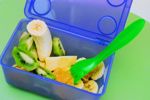 Bárhova magunkkal vihetjük a jól zárható dobozkát, benne a friss, megtisztított, feldarabolt, fogyasztásra kész gyümölcsökkel. A kicsi élvezi, hogy önállóan tud enni belőle. Örömmel nyitja-csukja a dobozt, ki-be pakolja a gyümölcsdarabkákat, s közben próbálgatja, mire megy apró fogacskáival. Eleinte érdemes meghámozni a gyümölcsöt, bár sok kisbaba maga is boldogul ezzel a művelettel: addig dörzsölgeti ínyéhez az almaszeletet, amíg már csak a héj marad, azt pedig ügyesen kiköpi. A narancsgerezdeken pici lyukat rág, majd kiszívja a belsejét, s ugyanígy tesz a paradicsommal is. Engedjük kísérletezni, de maradjunk mindig a közelben! Ha félrenyel, kotorjuk ki gyorsan szájából a maradványokat, és fejjel lefelé tartva ütögessük a hátát. Ilyesmi szerencsére csak nagyon ritkán fordul elő.