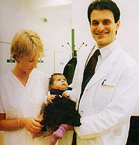 – Ha a párban megfogalmazódik a gyermek utáni vágy, mi végig tudjuk őket kísérni a baba megszületéséig, sőt, még tovább is. – mondja Dr. Vereczkey Attila, az osztály vezetője. – Csapatunkban minden olyan szakma képviselteti magát, amelyikre a gyermekre vágyó, vagy várandós pár gondozása során szükség lehet. Nálunk egyforma hangsúlyt kap az andrológus-urológus, az immunológus, a biológus, a nőgyógyász vagy a pszichológus munkája. Az összes szükséges vizsgálatot és beavatkozást helyben el tudjuk végezni. Ez a beteg kényelme szempontjából sem elhanyagolható, de főként azért fontos, mert így sokkal hatékonyabb a munkánk: a heti szakmai megbeszélésen megvitatjuk az egyes párok helyzetét, eredményeit, és közös döntést hozunk a további lépésekről. Nem csak papírokat, leleteket küldözgetünk egymásnak, hanem valóban együtt dolgozunk. A pszichológusunknak nagy szerepe van a folyamatban. Ő mondja meg, mikor alkalmas a pár egy komolyabb beavatkozásra. Az adott házaspár stressz-állapotának felmérése a szakmai munkánk alapja. Régi tapasztalat ugyanis: ha a lélek ellenáll, a test sem fog együttműködni.