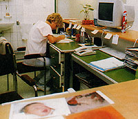 – Nagyon fontosnak tartjuk, hogy a betegeknek ne kelljen sokat várakozniuk – mondja Kobilárcsik Eszter, részlegvezető főnővér. – A titok nyitja a jó szervezés. Mindenkire legalább fél órát számolunk orvosonként. Telefonos előjegyzés alapján dolgozunk. A recepciós tartja számon az orvosok időbeosztását, a szabad vizsgáló és műtőhelyiségeket, a megelőző és a soron következő vizsgálatokat, ő közvetít az orvos és a páciens között. Minden percre pontosan ki van számítva. Így mindig elég idő jut a betegre.