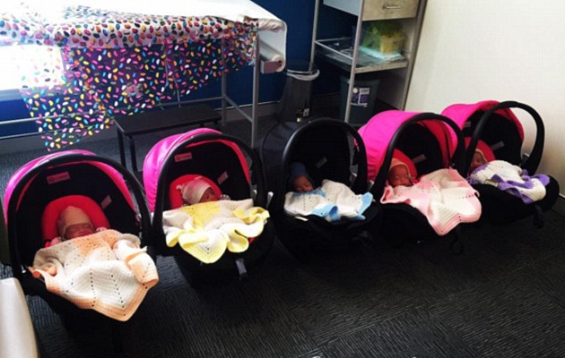 Fél évvel azután, hogy világra hozta ötös ikreit, a 26 éves ausztrál édesanya, Kimberly Tucci először osztott meg róluk olyan fotót, ahol mind az öten egyszerre látszanak. Az anyuka, aki az ikrek mellett további két, öt év alatti gyermeket is nevel, a Surprised by Five elnevezésű Facebook-oldalán tette közzé a képet, amit nem sokkal azelőtt készített, hogy orvosi rutinellenőrzésre indultak volna az ikrekkel.