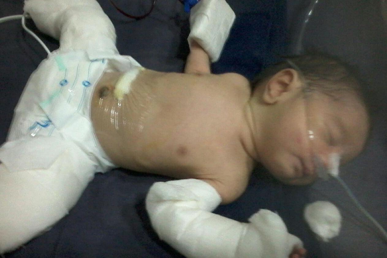 Múlt héten a babát egy másik kórházban gyermeksebészek megoperálták, és eltávolították szervezetéből a magzatot, egy 7 centiméteres, 150 grammos fiút.