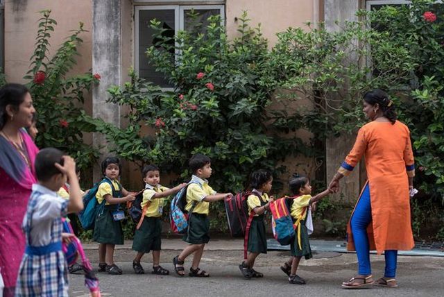 Első nap a Mahila Sangh iskolában. Fotó: Hindustan Times/Getty Images