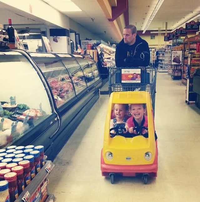 Amikor bevásárlás közben tolja a gyerekeket a kocsiban.