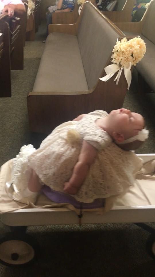 A kislány ugyanis még a bevonulás előtt mély álomba szenderült egy, kifejezetten neki beszerzett kocsin. Édesapja, Joe Morman a Redditen elmondta, a kislány nagyon várta a ceremóniát, de jó 20 perccel a bevonulás előtt elálmosodott. „Próbáltam énekelni neki, hogy ébren tartsam őt, de végül ellentétes hatást sikerült elérnem. Rugbie mély álomba szenderült.