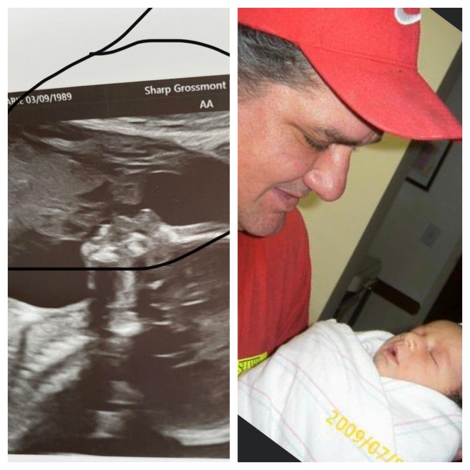 A nő a Redditen számolt be a különös esetről. Amikor meglátta a felvételt, egyből beugrott neki egy régi fotó, amin az azóta meghalt édesapja látható az első gyerekével. Ennek a fényképnek a hasonmása jelent meg az ultrahangon: