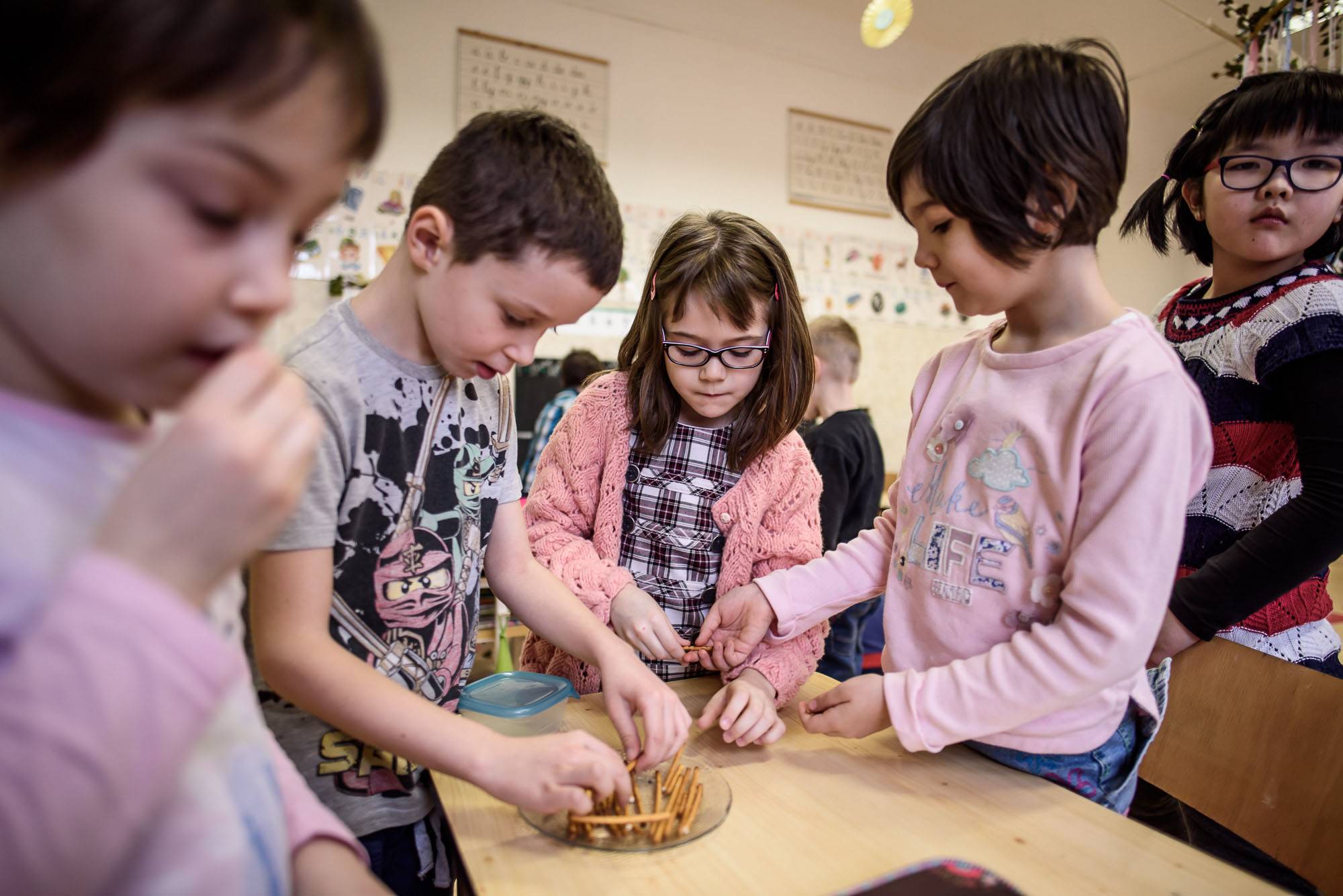 Hiába túl szép, hogy igaz legyen, igaz: ilyen együttműködést hat-hét éves gyerekek között még nem láttunk. Nincsenek játszmák, nincs hatalmi hierarchia. Kimondatlan alapszabály, hogy ha valami ehető, és több van belőle, mint egy, körbekínálják. A lassúakat megvárják, a későknek lopva mutatják, hol tartanak. Ha jelentkezni kell, az osztály fele szabályosan kiesik a padból, a másik fele inkább csendben tudja a választ.