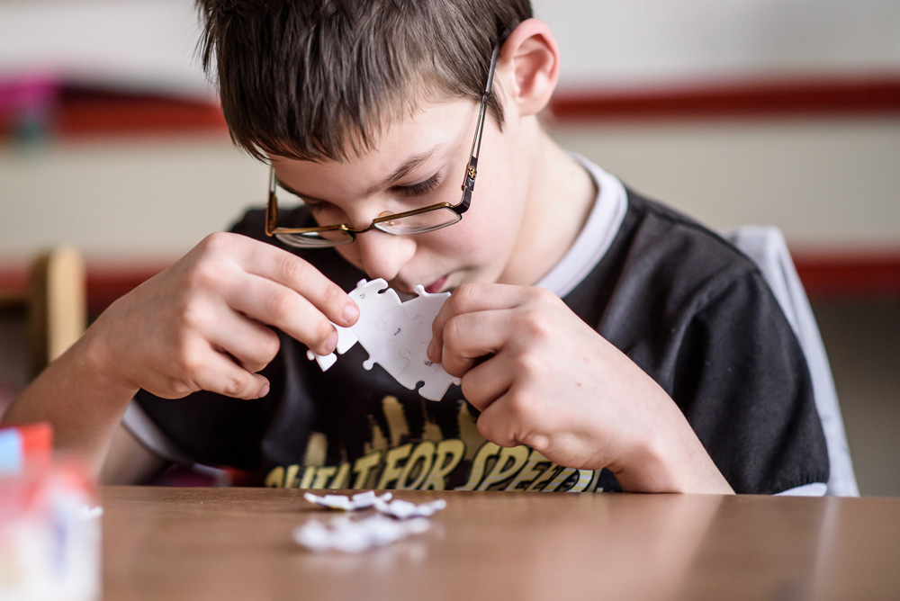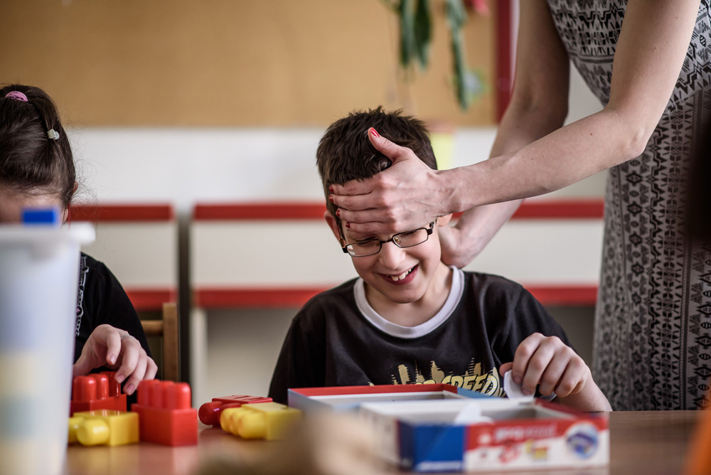 Szabit nehéz szóra bírni. Egyébként ő a legnagyobb partiarc, folyamatosan bohóckodik, farsangi monológja már most legendás, most viszont zavarban van, talán tőlem, talán a fényképezőtől, vagy inkább mindkettőnktől. Nem teszi le a 3D-s kirakót, ami csak nem akar kirakódni, Szabi viszont nem adja fel, ha valami leesik, felveszi (ami tízszer olyan bonyolult és hosszú művelet, mint az egészséges harmadikosoknak), ha szétesik, kezdi elölről. „Matekból penge, informatikus szeretne lenni, és az is lesz.” Egyetértünk.