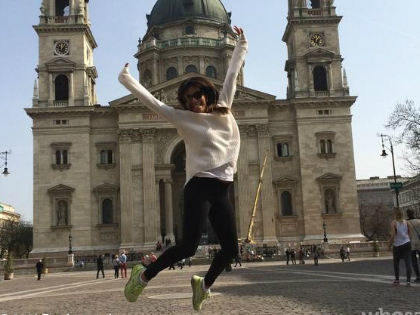 A Bazilika előtt ugrándozik Eva Longoria – fotó