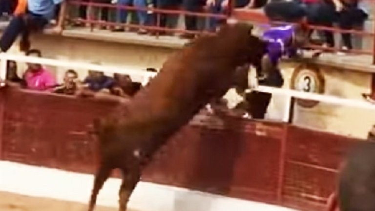 Sokkoló videó: felöklelt egy férfit a dühöngő bika