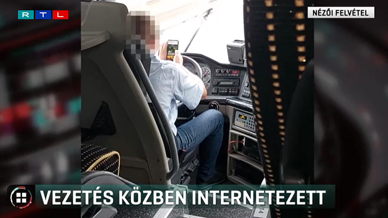 Könyökével vezette a buszt, hogy a mobilját nyomkodhassa