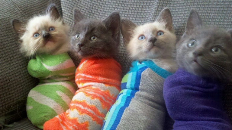A zokniba csomagolt cicák a net új sztárjai