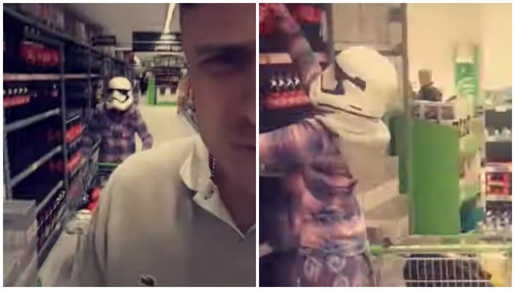 Koronavírus-pánik: birodalmi rohamosztagos sisakban ment bevásárolni
