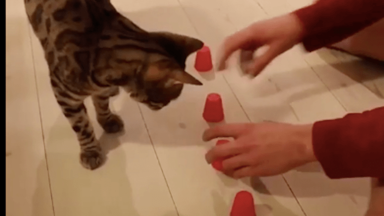 Ez a macska mindenkit megverne az itt a piros, hol a piros játékban – videó