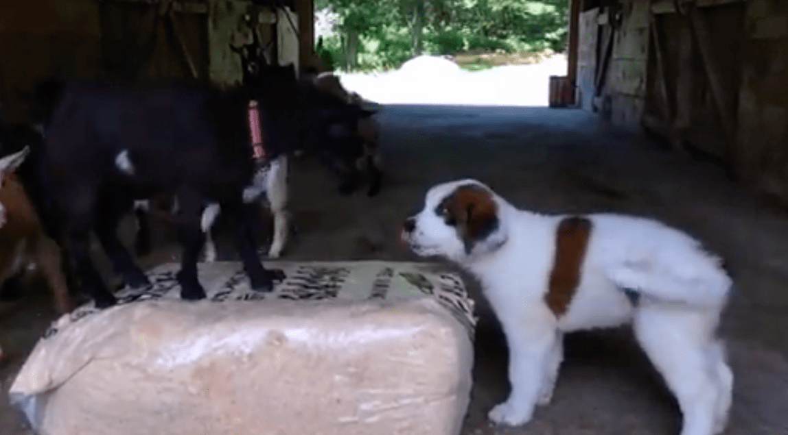 Cuki videó: kecskékkel barátkozna a kíváncsi kiskutya